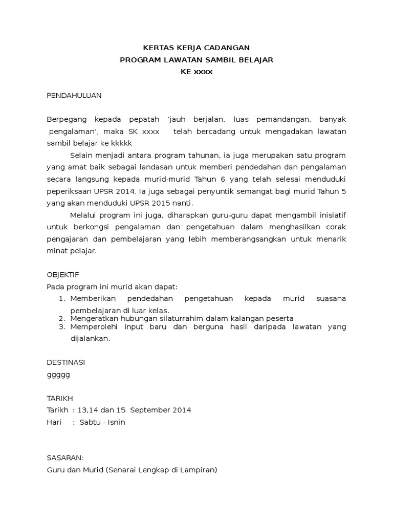 Contoh Kertas Kerja Lawatan Sekolah Pdf